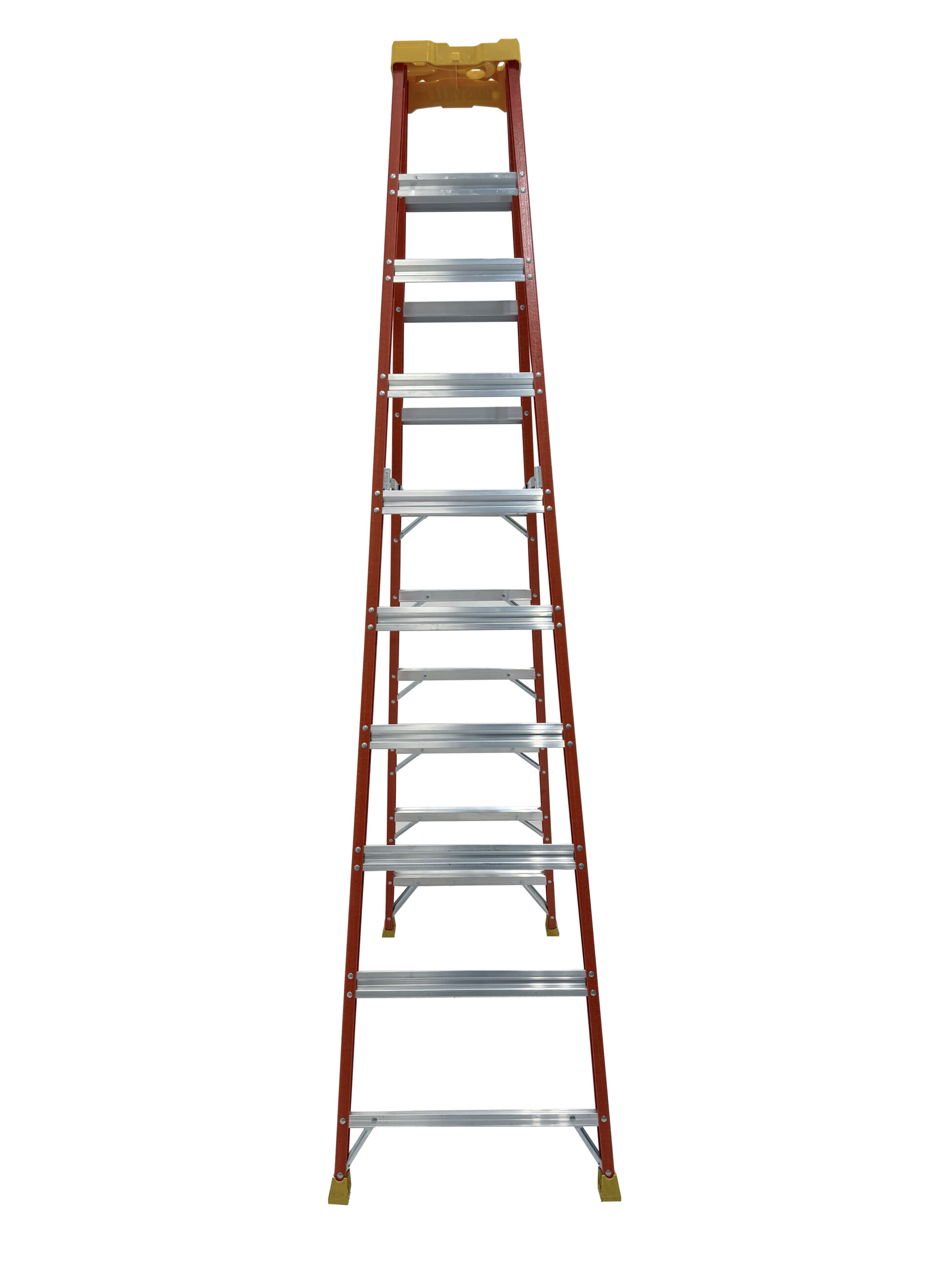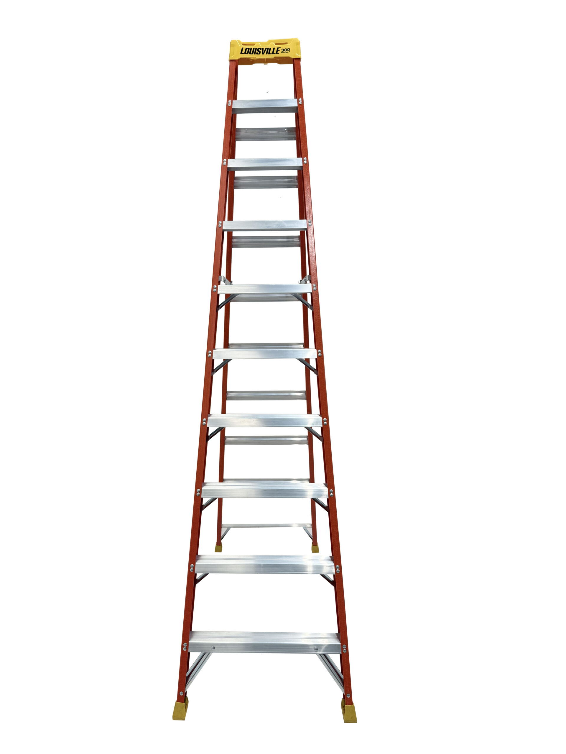 This Louisville 10 foot non-conductive fiberglass step ladder has a load capacity of 300lbs, rated ANSI Type IA. This ladder is equipped with a raptor top, heavy-duty gusset bracing, slip-resistant boot, inside spreader braces, wide back braces, and double-rivet step construction. The Louisville L-3016-10 step ladder meets or exceeds the safety standards set by ANSI and OSHA. Color may vary.