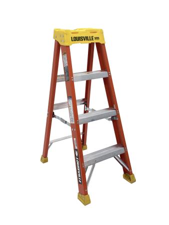 This Louisville 4 foot non-conductive fiberglass step ladder has a load capacity of 300lbs, rated ANSI Type IA. This ladder is equipped with a Raptor Top, heavy-duty gusset bracing, slip-resistant boot, inside spreader braces, wide back braces, and double-rivet step construction. The Louisville L-3016-04 step ladder meets or exceeds the safety standards set by ANSI and OSHA.