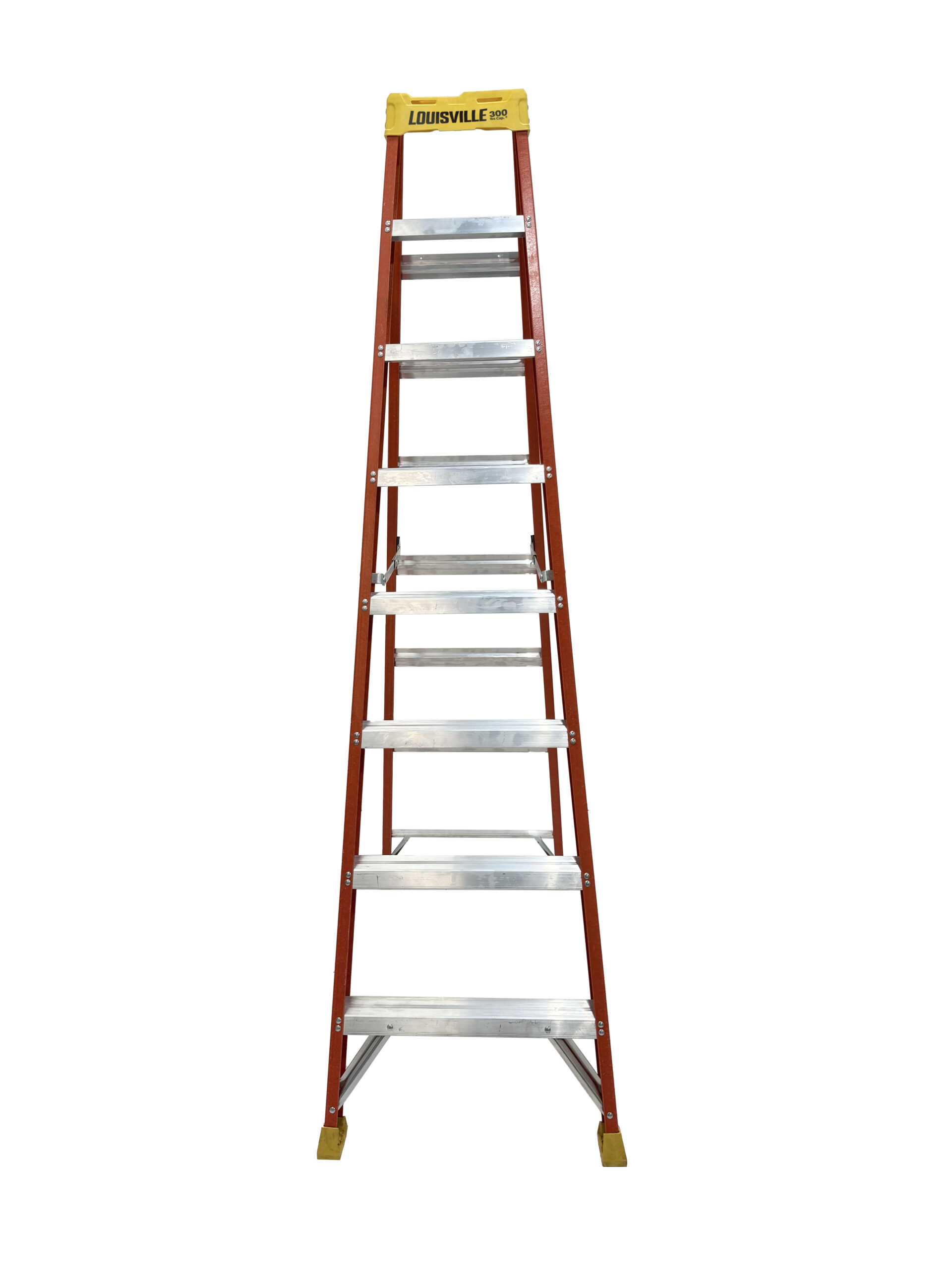 This Louisville 8 foot non-conductive fiberglass step ladder has a load capacity of 300lbs, rated ANSI Type IA. This ladder is equipped with a Raptor top , heavy-duty gusset bracing, slip-resistant boot, inside spreader braces, wide back braces, and double-rivet step construction. The Louisville L-3018-08 step ladder meets or exceeds the safety standards set by ANSI and OSHA.